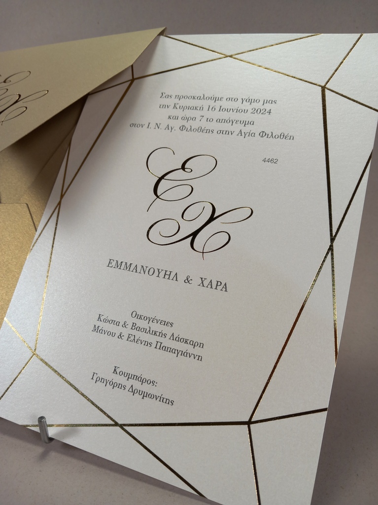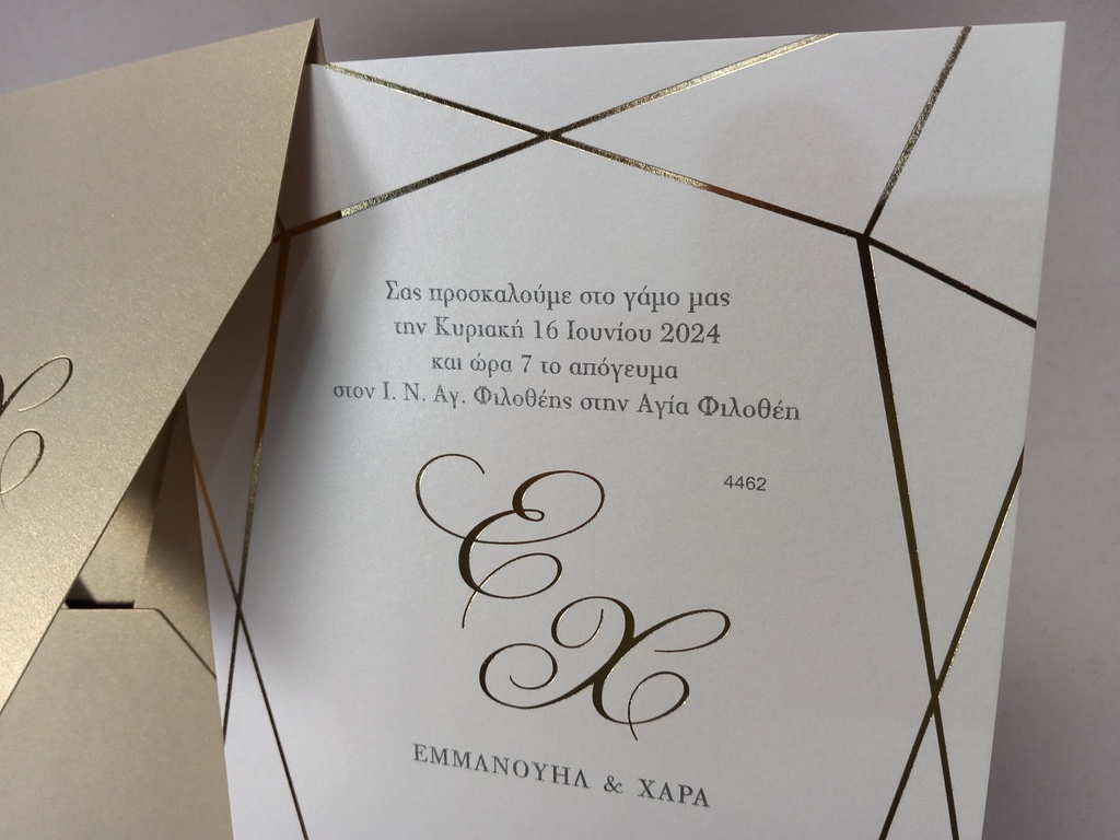 Η κάρτα έχει προ τυπωμένο σχέδιο που το κόστος για την κατασκευή του συμπεριλαμβάνεται στην τιμή της πρόσκλησης.