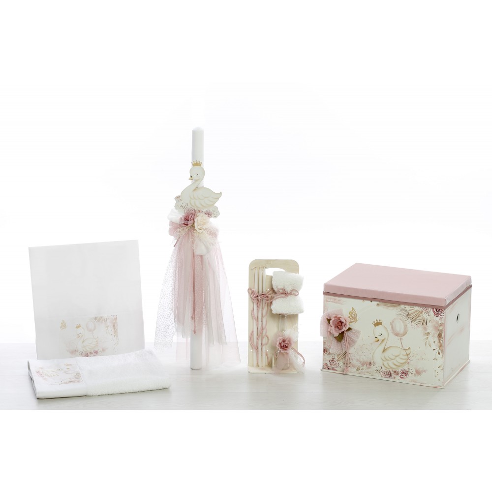BE2349 σετ βάπτισης για κορίτσι με θέμα κύκνος